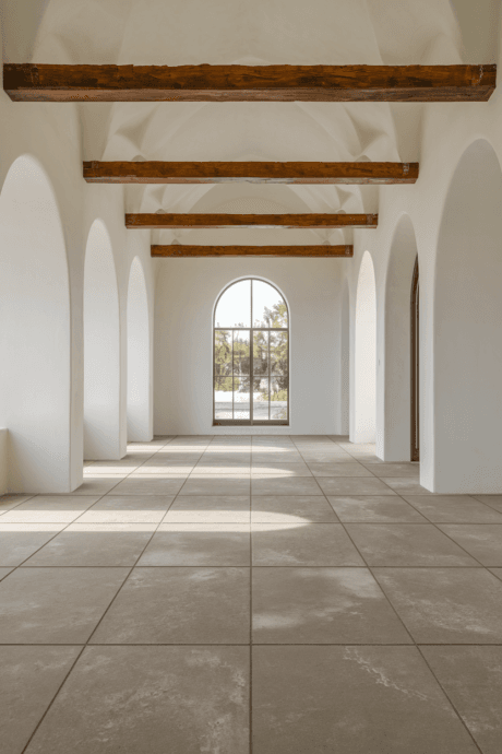 Bring natural, earthy elegance to bathrooms with porcelain tiles mimicking the subtle texture and warm tones of natural limestone. These tiles offer limestone’s organic appeal without its porosity and maintenance concerns, making them ideal for moisture-rich environments. The matte finish provides practical slip resistance while creating a softer, more sophisticated look than glossier options. The neutral palette—typically ranging from cream to beige with subtle fossilized details—creates a tranquil foundation that works beautifully in nature-inspired or spa-like bathrooms.