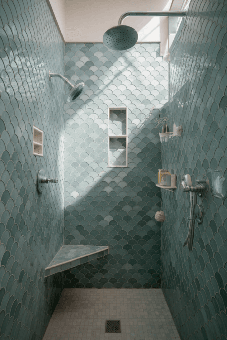 Channel coastal vibes with fan-shaped tiles that create a scalloped pattern reminiscent of fish scales or mermaid tails. This whimsical yet sophisticated shape adds movement and visual interest, particularly in bathrooms with simple fixtures and minimal decor. Available in various sizes and colors, these distinctive tiles work beautifully as an accent wall, shower surround, or even as a creative twist on the traditional backsplash, bringing organic curves to spaces often dominated by straight lines.
