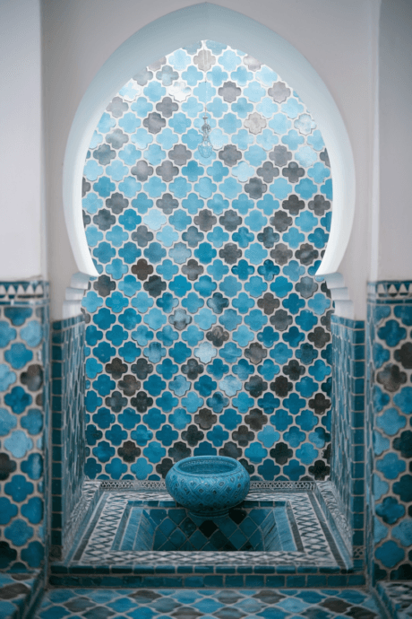 Embrace beautiful imperfection with Zellige tiles, handcrafted Moroccan treasures known for their glossy, irregular surfaces and subtle color variations. Each tile is slightly different, creating a shimmering, textured effect as light plays across their uneven surfaces. These artisanal tiles bring authentic old-world charm to contemporary bathrooms, working beautifully as shower surrounds or feature walls where their luminous quality can be fully appreciated in varying light conditions.