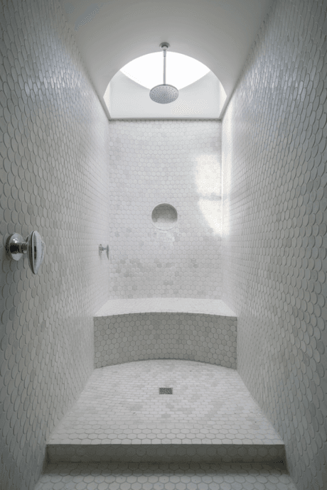 Small but mighty, penny round tiles pack a powerful design punch with their distinctive circular shape. These classic mosaics create texture and visual interest, working beautifully on shower floors where their numerous grout lines provide excellent slip resistance. Available in virtually every color and material, from glossy ceramic to natural stone, penny rounds can be installed in solid hues for subtle texture or combined to create patterns and gradients for more dramatic effect.