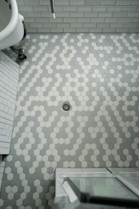 Hexagon tiles bring geometric interest to bathroom floors while maintaining a classic feel. Available in various sizes, from tiny mosaics to large-format options, these six-sided tiles create a honeycomb pattern that adds texture and depth. The distinctive shape works wonderfully in both modern and traditional bathrooms, particularly when used in subtle variations of the same color for a sophisticated tonal effect that doesn’t overwhelm the space.