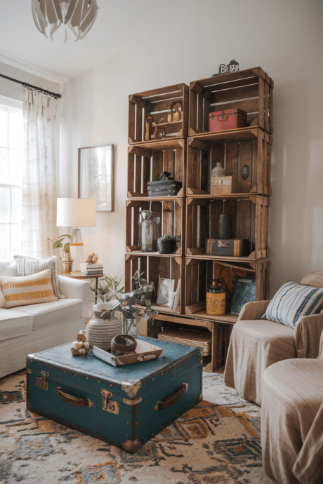 Embrace sustainability by incorporating beautifully upcycled furniture pieces with visible histories. A weathered door transformed into a coffee table, wooden crates stacked as bookshelves, or a vintage suitcase repurposed as storage adds authentic character. These one-of-a-kind pieces embody the bohemian values of resourcefulness and environmental consciousness. Their imperfections and patina create conversation pieces that make your living room uniquely yours, impossible to replicate from catalog shopping.