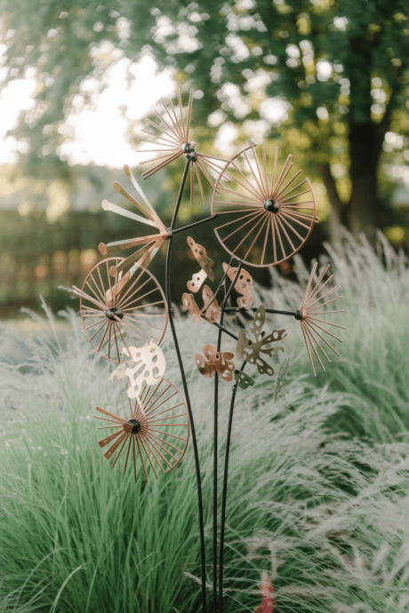 Design moving garden art using weatherproof materials that respond to the slightest breeze. Create spinning pinwheels, dancing metal flowers, or swaying pendulums that add dynamic movement to your garden tableau. The gentle motion and soft sounds create a meditative atmosphere while drawing attention to the natural airflow in your garden space.