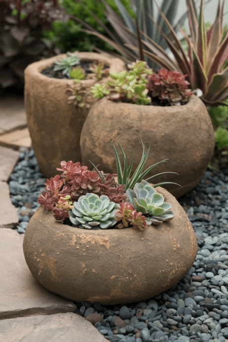 Create lightweight, stone-like containers by mixing cement, peat moss, and perlite to form a material called hypertufa. Mold this mixture around forms to create rustic planters that weather beautifully over time. Their porous nature makes them ideal for alpine plants and succulents, while their earthy appearance blends seamlessly into natural garden settings.