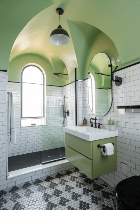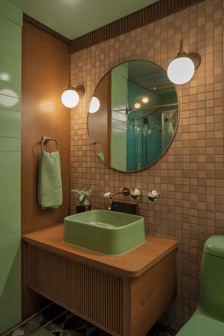 Embrace nostalgic charm with a contemporary take on 1970s avocado green bathrooms. This retro revival pairs the classic shade with modern elements—think avocado green subway tiles with contemporary fixtures or vintage-inspired green sinks with sleek minimal surroundings. Incorporate warm woods and brass accents to update the look. This playful approach celebrates design history while creating a unique, personality-filled bathroom that stands apart from today’s more predictable neutral spaces.
