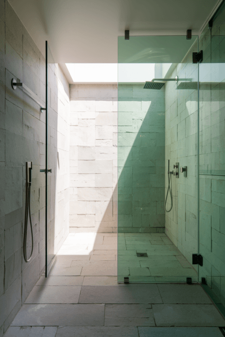 Elevate your bathroom with a showstopping jade green glass shower enclosure that combines functionality with artistic expression. The translucent quality of colored glass creates an ethereal effect as light filters through, casting gentle green shadows throughout the space. Pair with neutral tiles and fixtures to emphasize this unique feature. This bold choice transforms an everyday shower into a sensory experience, enveloping you in a calming green ambiance that feels both luxurious and rejuvenating.