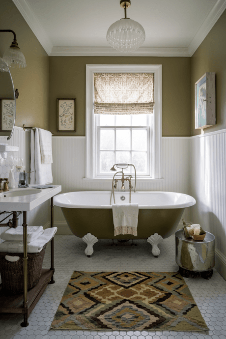 Make a vintage-inspired statement with an olive green clawfoot tub that serves as the luxurious centerpiece of your bathroom. This muted, sophisticated shade offers timeless appeal while the classic tub silhouette adds character and nostalgia. Complement with brass fixtures and white walls to let the tub truly shine. The rich olive tone evokes a sense of grounded elegance and natural beauty, perfect for creating a sanctuary where long, relaxing soaks become an indulgent daily ritual.