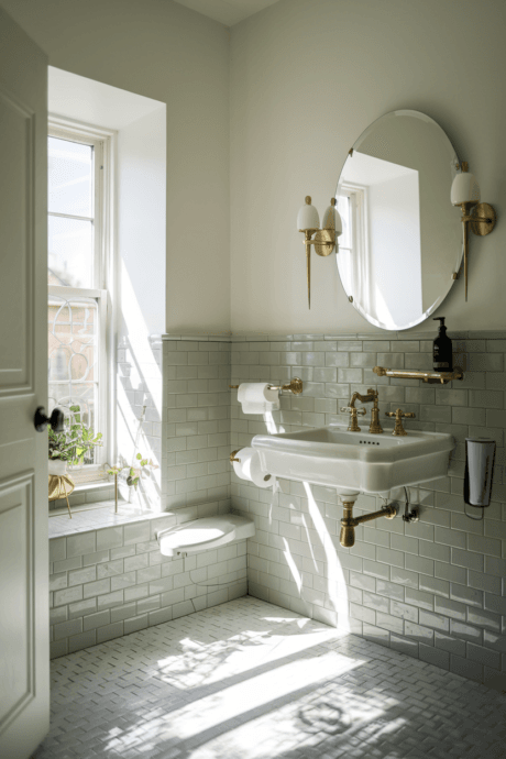 Sage green subway tiles offer a subtle yet sophisticated backdrop for any bathroom. Their understated hue brings a natural element to the space while the classic subway pattern adds timeless appeal. Pair with brass fixtures for warmth, or matte black for contemporary contrast. This versatile option works beautifully in both small powder rooms and spacious master bathrooms, creating a serene atmosphere that’s both on-trend and enduring.
