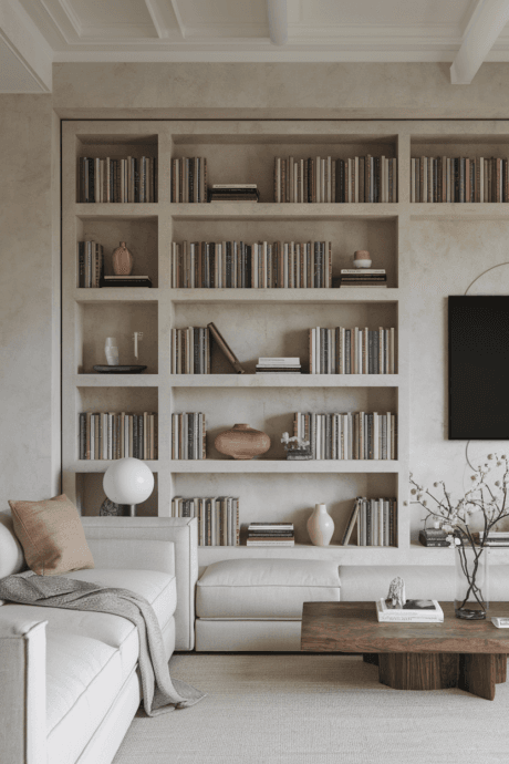 28. Floor-to-Ceiling Neutral Library