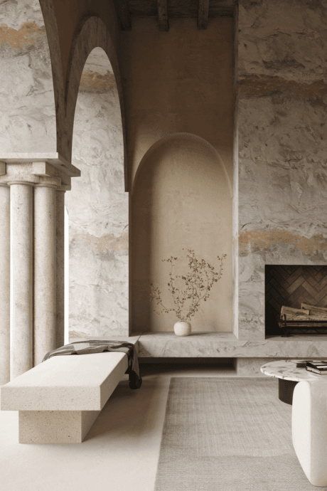 Incorporate architectural elements in limestone, concrete, or plaster – perhaps a fireplace surround, built-in bench, or decorative wall panel. These materials add mineral character and subtle color variation within the neutral spectrum. Their cool, substantial presence balances softer elements and connects indoor spaces to architectural traditions. The slight imperfections and natural variations in these materials add authenticity that manufactured surfaces often lack.