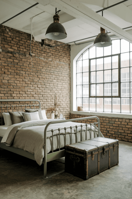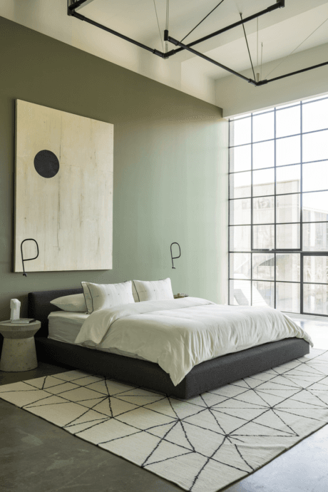 Soften industrial style elements with sage green interventions. The color’s natural softness provides welcome contrast to the harder edges of industrial design features like exposed brick, metal fixtures, and utilitarian furniture. Use sage through painted accent walls, bedding, or upholstered pieces. This unexpected combination balances masculine and feminine energy for a nuanced, contemporary space with depth and character.