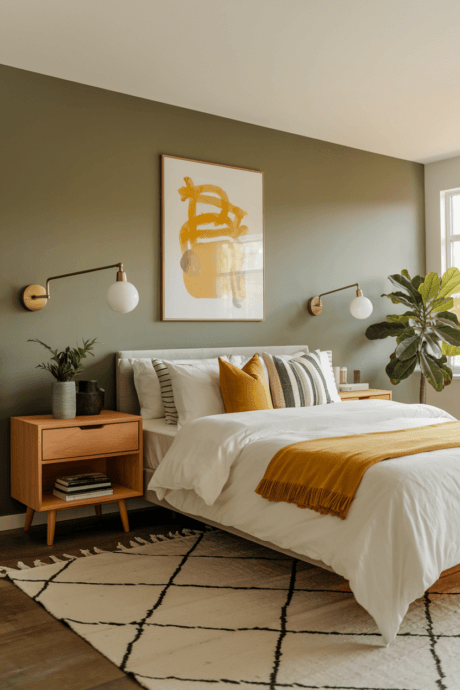 Energize sage green with strategic mustard yellow accents for unexpected vibrancy. The earthy undertones in both colors create a harmonious connection while their contrast on the color wheel creates visual excitement. Use mustard sparingly through pillows, artwork, or a single furniture piece against a sage backdrop. This combination works particularly well in spaces that receive limited natural light, adding warmth and optimism.