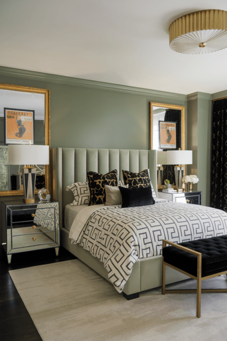 Merge sage green with Art Deco elements for unexpected sophistication. Incorporate geometric patterns, mirrored surfaces, and streamlined furniture with the characteristic curves and angles of this iconic style. The softness of sage provides a contemporary update to traditional Art Deco palettes while maintaining the style’s inherent elegance. Add black accents and metallic details for authentic Deco contrast.