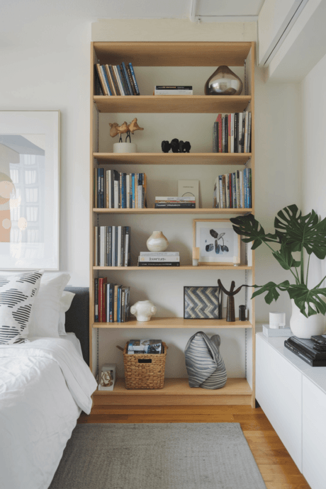 Define separate areas in a studio or open-concept apartment while adding storage with bookshelf room dividers. These dual-purpose pieces create visual boundaries between living, sleeping, or working zones while providing accessible shelving on both sides. Choose units with a mix of open shelving and closed cabinets to display decorative items while hiding necessary clutter.