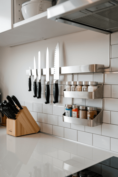 Free up valuable counter and drawer space by installing magnetic strips for knives and metal spice containers. This solution keeps sharp utensils safely stored yet easily accessible. For kitchens with limited cabinet space, magnetic spice tins attached to the refrigerator or a metal backsplash provide stylish, space-saving storage that puts ingredients within arm’s reach while cooking.