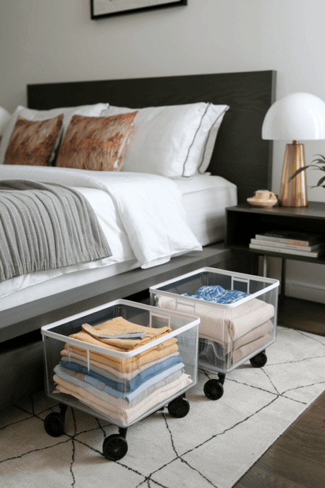 The space beneath your bed offers remarkable storage potential. Invest in slim rolling containers designed specifically for under-bed use. These can house seasonal clothing, extra bedding, shoes, or holiday decorations. Choose containers with wheels for easy access and dust-proof lids to keep contents clean. Some options even come with vacuum-seal functionality to compress bulky items.