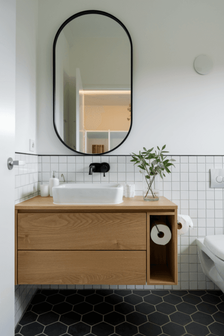 18. Floating Vanity with Hidden Toilet Paper Storage
